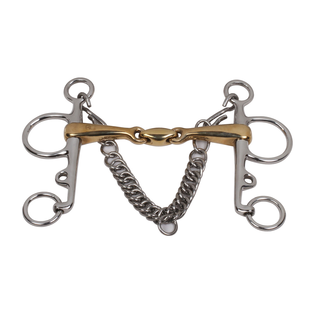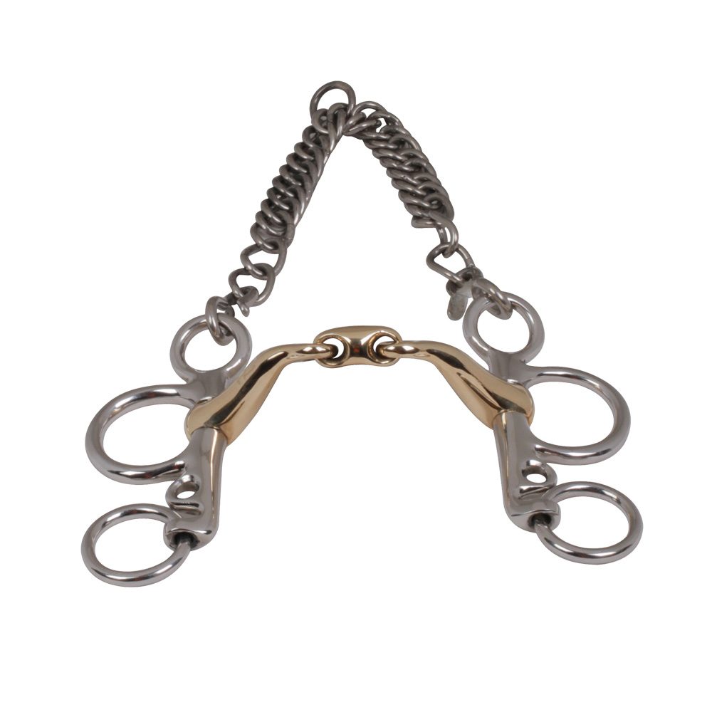 Pelham Roller Mouth Bit with Double Copper Rollers and copper Inlays